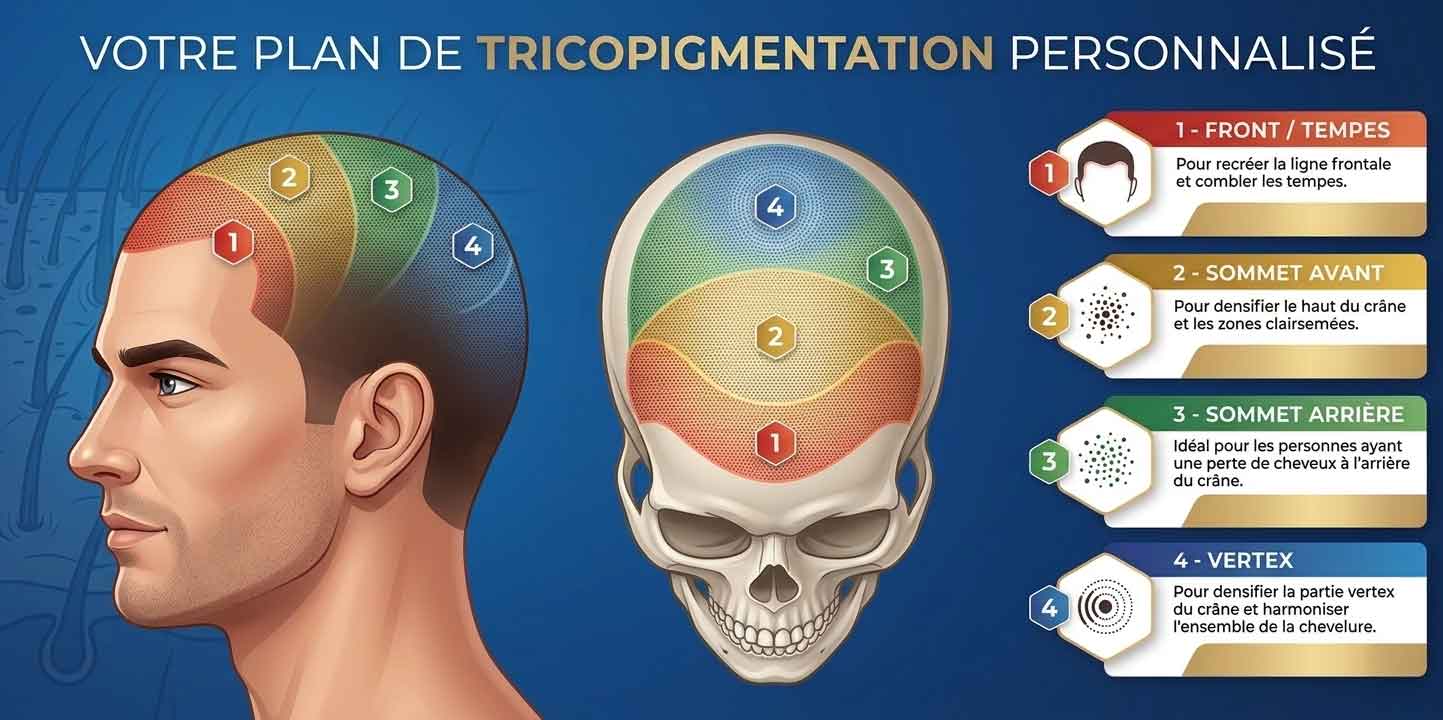 Découvrez nos articles dédiés à la tricopigmentation : prix, déroulement des séances, densification capillaire, effet crâne rasé, camouflage des cicatrices et conseils pour mieux comprendre les solutions adaptées à votre cuir chevelu.