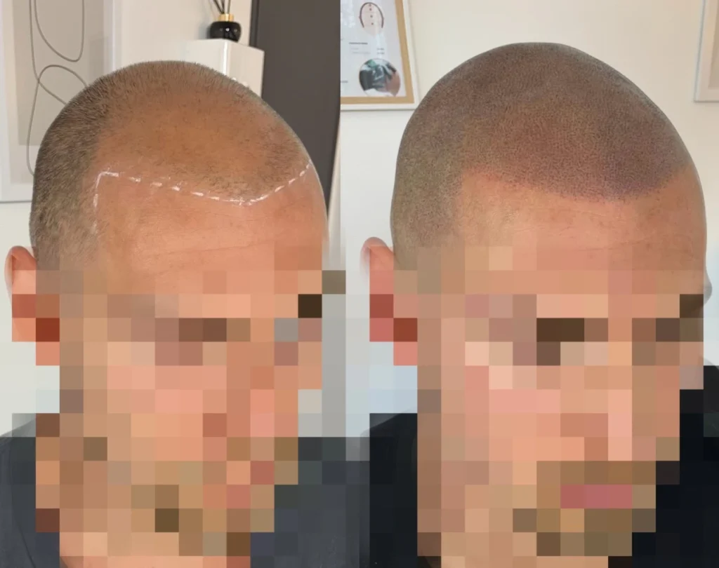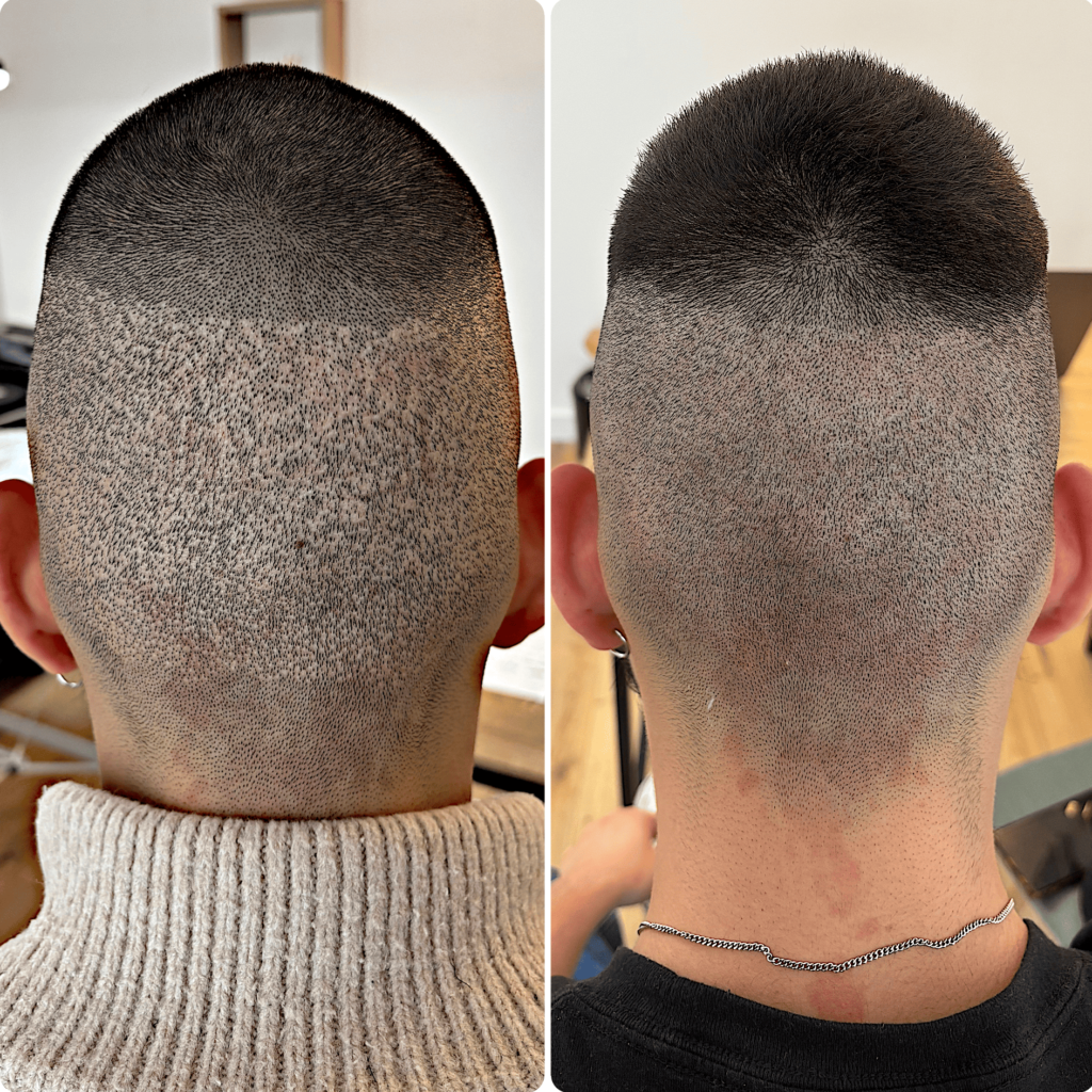 Oui, la tricopigmentation peut permettre de camoufler visuellement certaines cicatrices du cuir chevelu, notamment après une greffe capillaire de type FUE ou FUT. L’objectif est de réduire le contraste entre la cicatrice et les zones voisines pour rendre l’ensemble plus homogène.